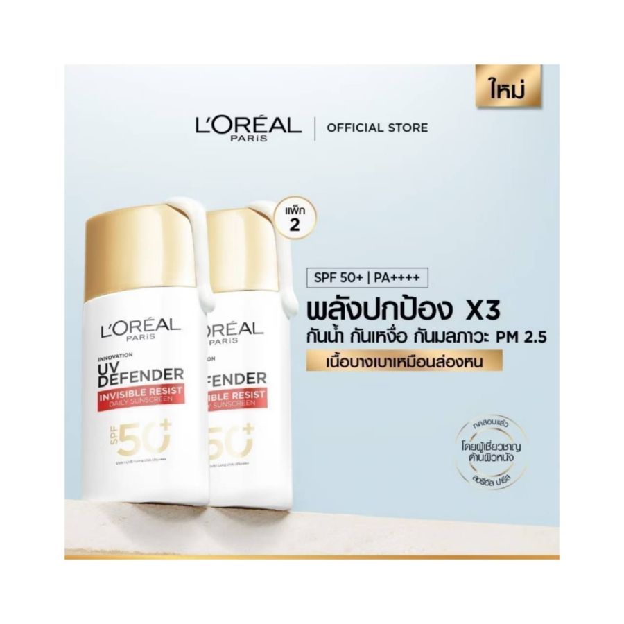 แพ็คคู่ ลอรีอัล ปารีส L'Ore'al Paris UV Defender Invisible Fluid SPF50+ PA++++ 50 ml