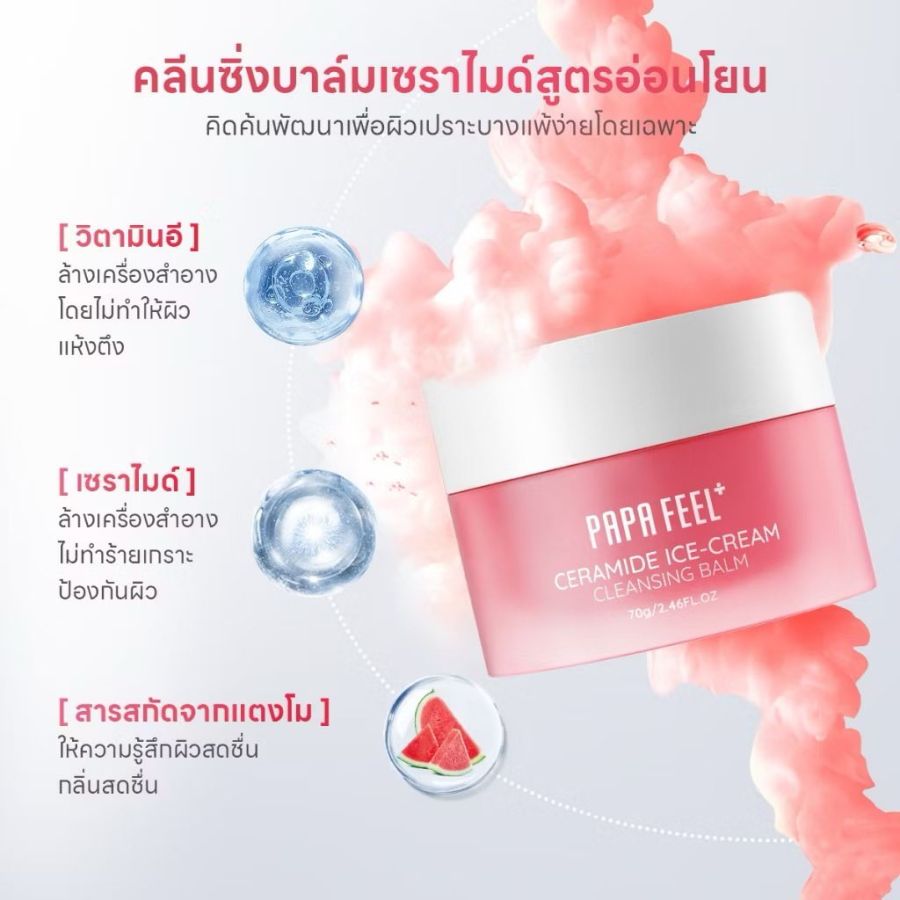 PAPA FEEL คลีนซิ่งบาล์ม เซราไมด์ ลดสิวอุดตัน 40g/70g
